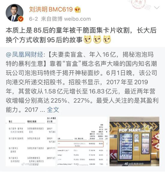 在泡泡玛特传出上市消息时,北京浩鸿明凯投资管理有限公司基金经理刘洪明就曾表示,“泡泡玛特本质是85年的同年被干脆面集卡片收割,长大后换个方式收割95后的故事。”