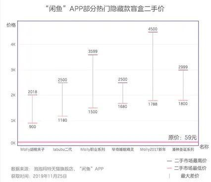 菲菲告诉时代财经,有的人买盲盒是为了收藏,也有的人是为了投资炒作。热门盲盒或者隐藏款盲盒具有比较大的升值空间。时代财经发现,“闲鱼”APP上部分热门隐藏款盲盒二手价最高涨幅近40倍。