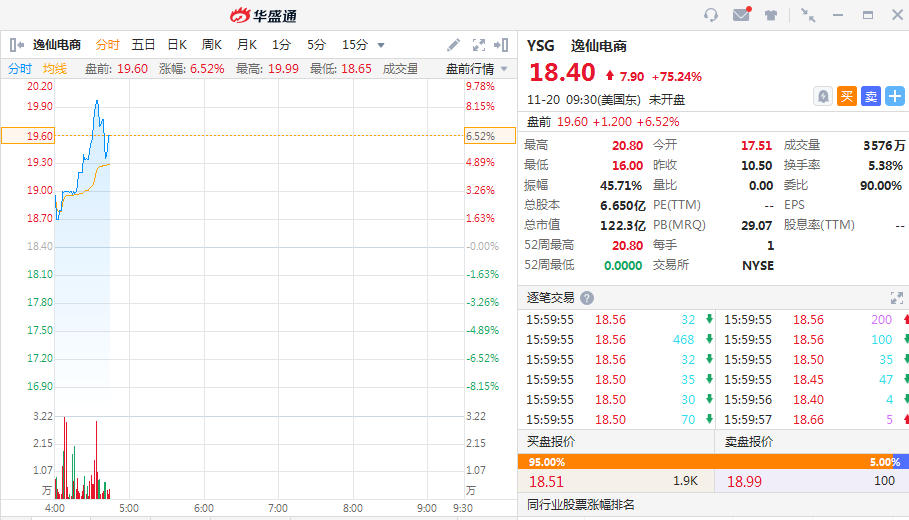 华盛资讯11月20日消息,今日美股盘前,多家中概股行情异动。
