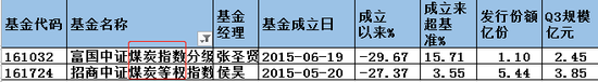 (2)煤炭基金中:即看好龙头就选富国中证煤炭指数分级基金,觉得中小煤企也不错,那就选招商中证煤炭等权基金。