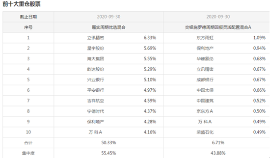 从两只基金重仓股看,都=配置了部分科技股,如立讯精密等。如下图。