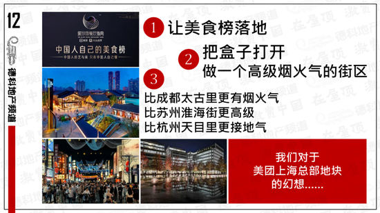 第三点就是,美团在它总部用地上做的商业街区,能不能比成都太古里更有烟火气,比苏州淮海街更高级,比杭州天目里更接地气。这三个项目,美团在做总部用地方案的时候,非常值得参考。