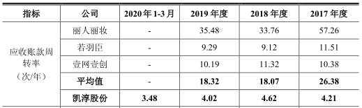 2017年至2020年3月31日,凯淳股份应收账款余额分别为1.54亿元、1.70亿元、2.13亿元、1.72亿元,应收账款净额分别为1.46亿元、1.61亿元、2.02亿元、1.64亿元。