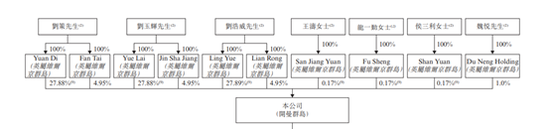 随着时间的流逝,领地控股的股东阵容也经历了数次洗牌。从IPO前的公司架构看,刘氏家族的人数在不断增加。最初,刘玉奇、刘山、刘玉辉及邓仲祥(独立第三方)分别持有领地35.71%、21.43%、21.43%及21.43%的股权,现邓仲祥已不在股东名单中。