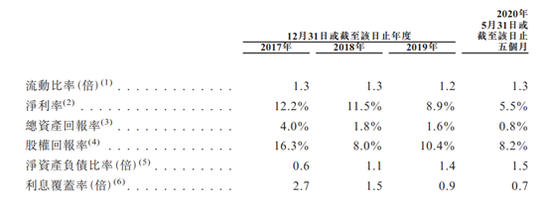 从盈利能力看,领地控股毛利率较为波动,2017至2019年度与截至2019年及2020年前五个月,公司毛利率分别为20.1%、35.7%、27.8%、31.2%及32.2%。此外,领地控股净利率近年来不断下滑,2017年至2019年度,其净利率分别为12.2%、11.5%、8.9%,截至今年5月31日,净利率仅为5.5%。