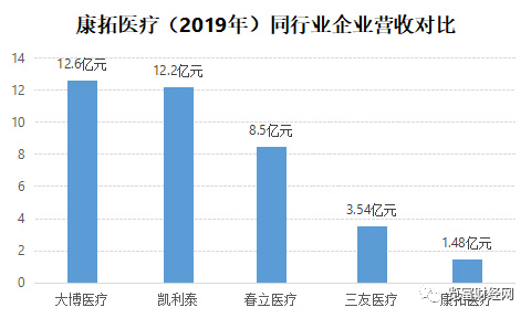 据披露,康拓医疗在2017年至2019年度分别实现营业收入为0.72亿元、1.10亿元和1.48亿元,虽然呈现逐年增长态势,但与同时的企业来比,公司近3年的营收总只是达到了同行业企业三友医药在2019年度一个报告期内的水平。