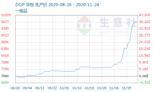 财联社11月24日讯,据生意社资讯,11月份以来增塑剂主要产品价格基本呈现直线上涨态势。上周,增塑剂DOP涨幅达11.78%,本月来涨幅超过30%。