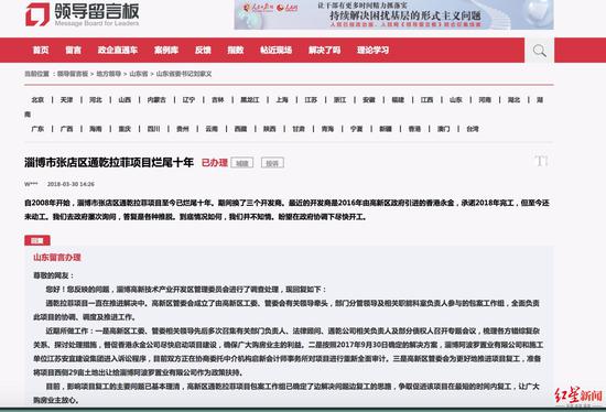 2020年11月13日,管辖该楼盘的淄博市高新区建筑管理处书面回复业主信访意见称,该项目已全面开展复工,计划于2021年底前竣工。