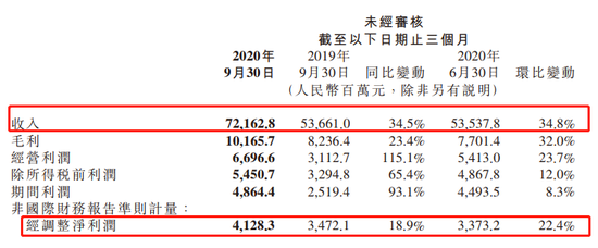 我们马上先看看小米集团的2020年三季度财务报表有多优秀: