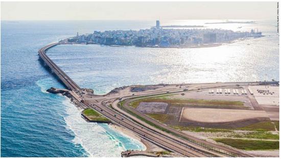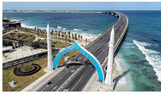 文章称,在印度洋的中心,2.1公里长的中马友谊大桥从一个田园诗般的环礁上蜿蜒而出,连接着马尔代夫首都马累和它的国际机场。