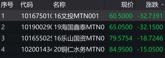 文投控股“16文投MTN001”最新净价跌近35%,报60.5元。