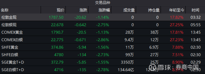 贵金属夜盘时段突现暴跌