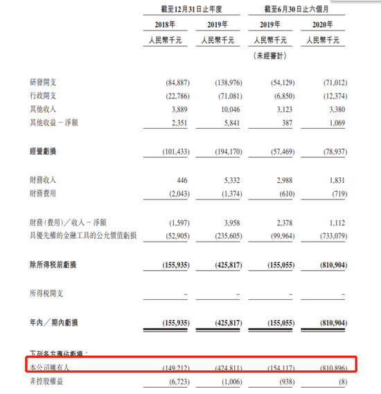 加科思的产品尚未获准进行商业销售,加科思尚未从产品销售产生任何收入。自公司成立以来,加科思尚未实现盈利。在具优先权的金融工具的公允价值亏损拖累下,于2018年、2019年以及截至2019年及2020年6月30日止六个月期间,亏损分别为人民币1.56亿元、人民币4.26亿元、人民币1.55亿元及人民币8.11亿元。