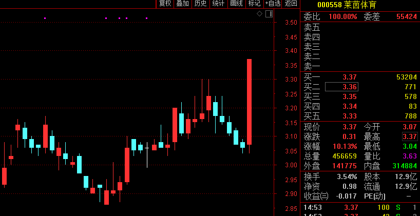而二级市场已提前反应。11月27日午后,体育概念股走强,其中莱茵体育(000558)快速封上涨停板,截至收盘报3.37元,涨停封单超5.3万手。而该股成交量也明显放大,总成交45.68万手,还手率3.54%。