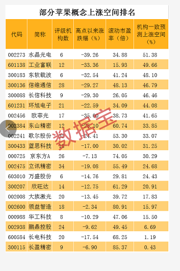 随着iPhone 12 Pro及Pro Max等机型销售优于预期,果链有望重新获得市场关注。5家以上机构评级的苹果概念股中,水晶光电、工业富联、东软载波等个股上涨空间均超过40%。部分龙头股方面,立讯精密上涨空间近25%,歌尔股份上涨空间超33%,蓝思科技上涨空间超31%。