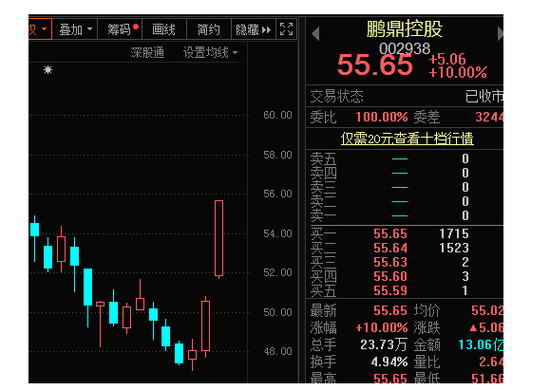 今天酿酒板块大幅下跌,山西汾酒跌超6%。今天表现较好的大市值股票当属鹏鼎控股,收盘涨停。