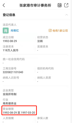 但据《天眼查》显示,张家港市审计事务所的营业期限,在1997 年3 月20 日时就已经终止经营,怎么可能在一年半之后的1998 年9 月29 日再出具《验资报告》?这岂不是赤裸裸的造假?这非常令人怀疑,新点软件存在“倒签协议”的申报资料造假行为。