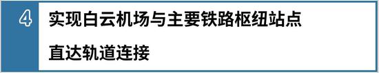 《方案》提出,完善综合交通设施配套,推动广中珠澳高铁、广河高铁等高速铁路,新白广城际、广佛城际等城际铁路,高速地铁、高速公路等多种交通方式引入机场。推动白云机场三期扩建工程建设,提升机场治理能力,构筑绿色运营管理体系。强化空铁联运,加强机场轨道专线建设,建立空铁联运信息互通机制,创新“白云机场—广州北站”一体化空铁联运模式。全面推进港口船舶岸电建设和使用,创新岸电使用监管模式。