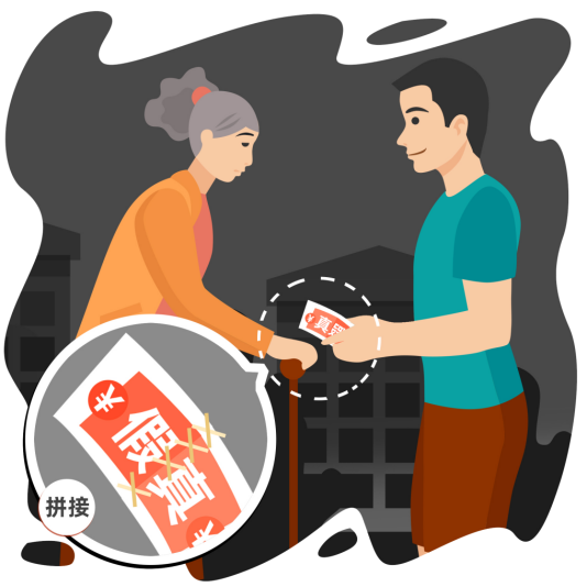 不法分子用一半真币一半假币粘贴拼凑一起,在灯光昏暗等情况时进行支付。特别是视力不好的老年人,容易被不法分子利用这一招数得手。