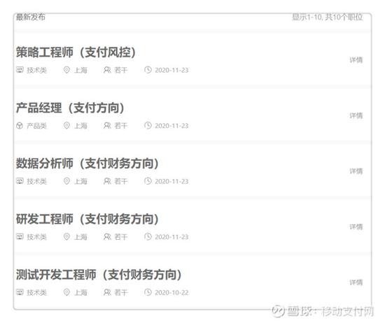 移动支付网还注意到,拼多多官网的社会招聘已公布10个支付相关职位,最新发布的时间为11月23日。
