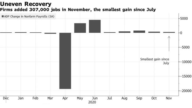 12月2日的数据显示,美国11月ADP就业人数仅增加30.7万,创下7月份以来的最小增幅