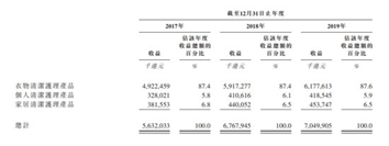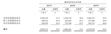 据蓝月亮招股书显示:公司于2017年至2019年,公司收益的复合年增长率为11.9%,于2019年,公司实现收益为70.5亿港元,公司实现溢利10.8亿港元。2019年,公司衣物清洁护理产品营收占比87.6%,录得61.78亿的营收。