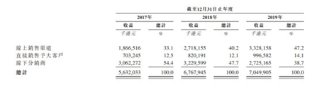 蓝月亮线上销售占比不断增加,2019年更是高达47.1%,线上营收33.28亿港元。