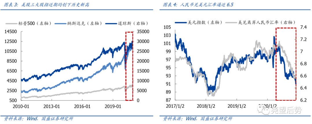 人民币升值与全球股市反弹,营造了良好的外部条件。刚刚过去的11月,我们看到人民币兑美元汇率进一步升值逼近6.5,同时美股三大股指均创下历史新高,尤其是道琼斯指数在11月上涨超12%,为过去30年的最大单月涨幅。从以往的经验看,外围行情向好叠加汇率单边升值预期,是最适宜外资入场的组合。