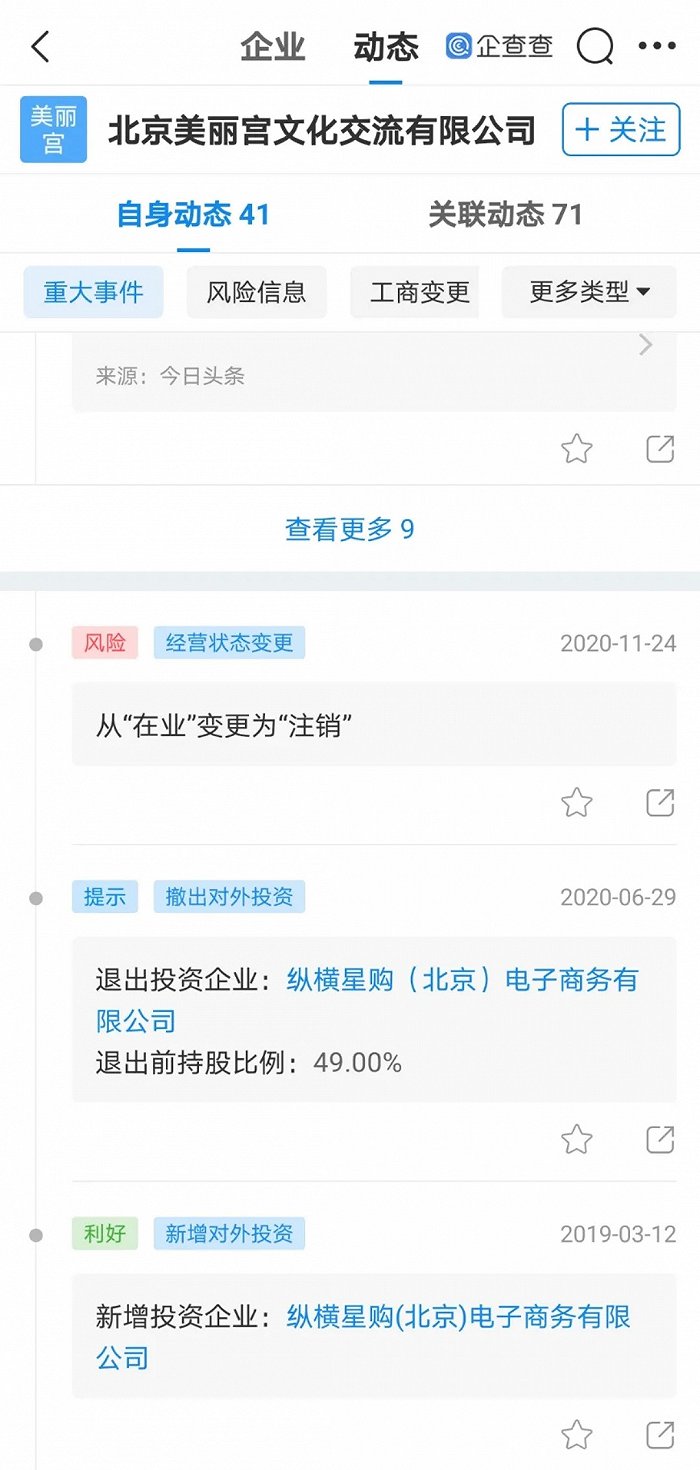 据悉,该公司曾于2019年入股范冰冰化妆品品牌FANBEAUTY关联企业纵横星购(北京)电子商务有限公司(以下简称纵横星购),持股比例49%,并于今年6月退出。
