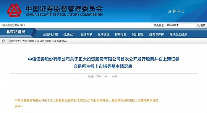 据北京证监局官网披露,正大投资股份有限公司(以下简称“正大投资”)日前与中信证券签署上市辅导协议,计划在上海证券交易所主板挂牌上市。