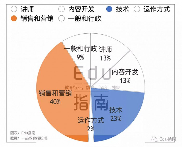 除了产品业务线、营收的增长,成本支出的现状、经营的亏损,值得关注的还有:一起教育的员工组织结构。