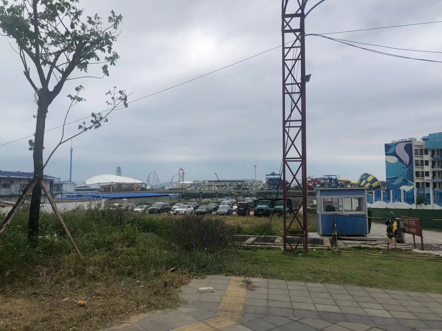 沿着海洋欢乐世界麦迪卡斯水乐园外围直走,会来到园区的另一侧。该处有一条由保安看守的内部道路,道路通往在建的园区。放眼望去,项目内设有蓝色板房及待完善的娱乐设施。