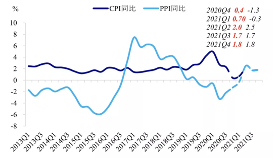 再次,结合当下的市场情绪,固收团队认为股市顺周期板块与债市共舞并不矛盾。因为理解当下债市行情的关键在于货币政策而非基本面,一方面,央行货政报告认为“不存在长期通胀或通缩基础”,预计2021年CPI温和、PPI走出通缩冲高回落;另一方面,即便价格指数都走高,也不太影响政策定调。