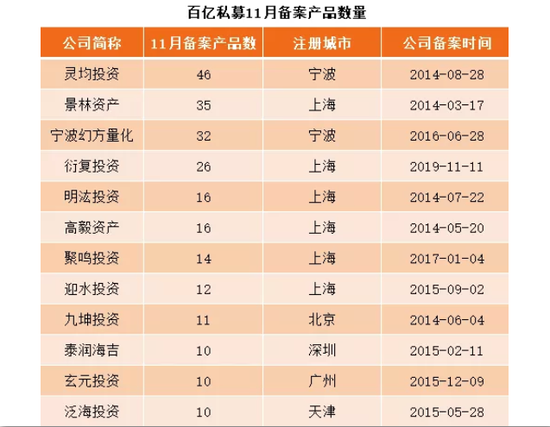 据统计,11月40家百亿级私募密集备案新产品合计321只。具体来看,灵均投资备案了46只产品,而去年同期仅备案6只。景林资产备案了35只产品,为其去年同期备案产品数的近5倍。幻方量化、衍复投资、高毅资产则分别备案了32只、26只、16只新产品。