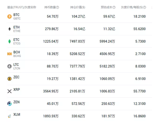 灰度基金公司还持有280万个以太坊,价值约为16.45亿元。此外,该基金公司还持有其他七种加密货币资产,但在全部的九种加密货币资产中,灰度基金公司的持仓比重中,比特币为第一大重仓品种,仓位占比高达83%,以太坊在基金仓位中的比例为13%,也就是说,全市场市值最大的两个币种,在灰度基金公司的持仓中占比高达96%,而其他七个币种合计仓位仅为4%。
