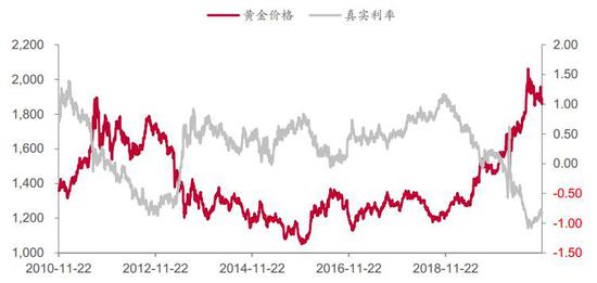 所谓宏观价格的扰动,我们更多的是寻找影响贵金属的锚,目前市场较为一致的看法是真实利率与贵金属价格存在相当高的反向相关性,从2015年至今的数据看真实利率的变动几乎与贵金属价格的变动完全一致。因此在研究贵金属价格变动时,我们更多的需要关注宏观引起的利率变化。