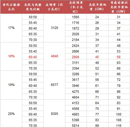 表6:一次能源3%增速下十四五期间光伏发电量测算