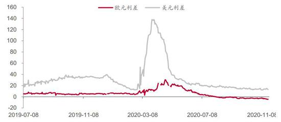 图6:美元利差与欧元利差比较(3月美元利差扩大说明美元紧张,流动性危机)