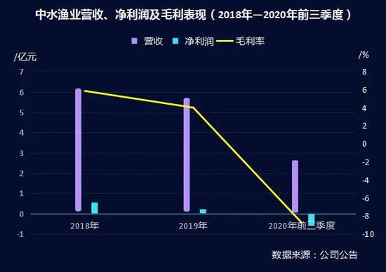 2020年半年报显示,由于新冠肺炎疫情对销售流通环节和消费市场造成负面冲击,上半年金枪鱼产品市场销售及贸易放缓,中水渔业经营低迷,其金枪鱼业务量价齐跌、库存增加,仅实现营收1.16亿元,同比下跌36.78%,毛利率跌至-4.29%,同比下降11.35%。