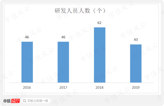 而且奇葩的是2019年公司的研发人员人数还变少了,为43人,比公司上市前的人数46人还要少,这也印证了公司研发拉胯,对研发中心项目并不上心。