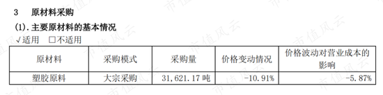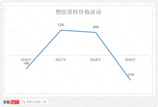 2016年至2019年,公司采购的塑胶原料价格波动情况分别为-6%、11%、10%和-11%,与公司毛利率波动情况相反。