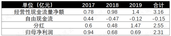 公司上市三年来,产生的累计自由现金流为负,但分红却非常大方。