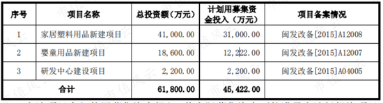2017年2月,公司上市募集资金4.54亿元,其中3.1亿用于家居塑料用品新建项目,1.22亿用于婴童用品新建项目,0.22亿元用于研发中心建设项目。