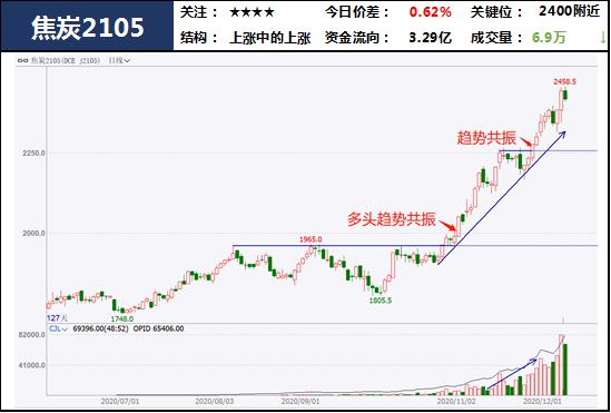 2.盘面:焦炭 多次触发多头趋势共振信号,上涨趋势延续,新增产能释放不足,国内缺口难填,再创新高,上涨结构仍在。