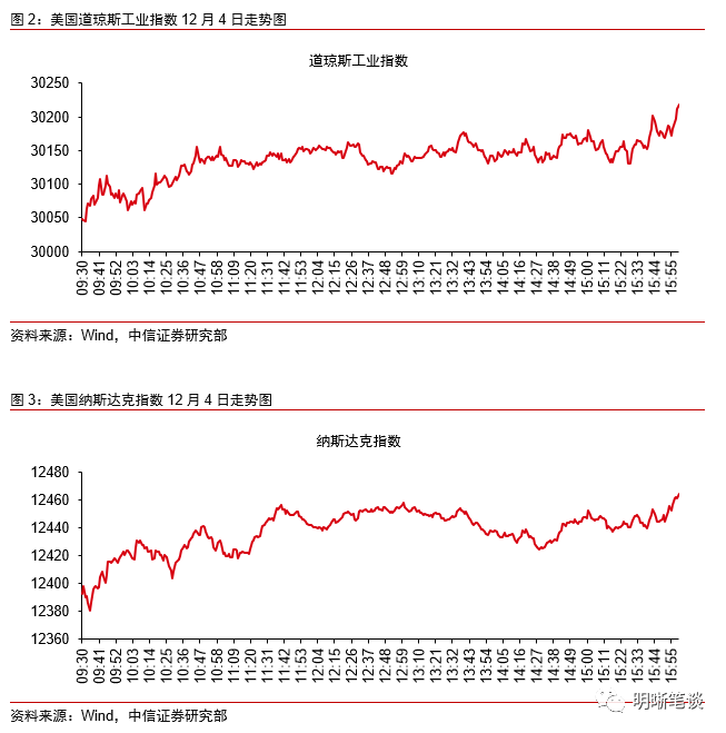 但表现疲软的非农数据并未压制市场的风险情绪,相反在非农数据发布当天美国三大股指高开高走录得明显上涨,从原因来看非农数据较差加重了市场对于美国新一轮财政刺激的憧憬,因此从对市场走势的影响角度,美国新一轮财政政策的前景变化仍旧是近期海外市场需要关注的一个重点。虽然11月非农数据表现疲软,但是从美股市场当天的表现来看,非农数据非但没有压制当日的风险情绪,三大股指反倒高开高走录得明显上涨,道指12月4日报收30218.26点,当日涨幅0.83%;纳指报收12464.23点,当日涨幅0.70%;标普500报收3699.12,当日涨幅0.88%。从原因上来看,我们认为股市如此反应的原因或在于,此前在失业率持续下降,非农就业人数持续修复背景下,可能国会在达成财政刺激计划的迫切性上也受到了影响。而11月份的非农就业人数或给美国国会敲响了警钟,市场对于新一轮财政刺激的憧憬也有所增加,因此从对市场走势的影响角度,美国新一轮财政政策的前景变化仍旧是近期海外市场需要关注的一个重点。