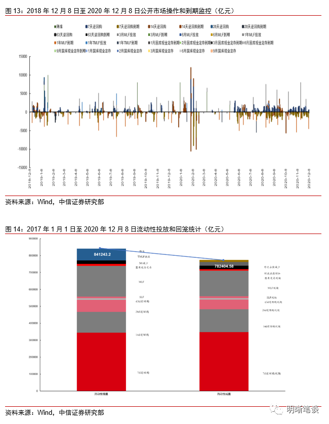 我们对市场流动性情况进行跟踪,观测2017年开年来至今流动性的“投与收”。增量方面,我们根据逆回购、SLF、MLF等央行公开市场操作、国库现金定存等规模计算总投放量;减量方面,我们根据2020年10月对比2016年12月M0累计增加12732.56亿元,外汇占款累计下降7847.77亿元、财政存款累计增加21277.95亿元,粗略估计通过居民取现、外占下降和税收流失的流动性,并考虑公开市场操作到期情况,计算每日流动性减少总量。同时,我们对公开市场操作到期情况进行监控。