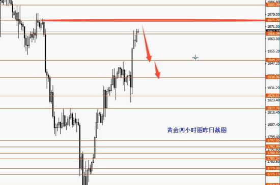 黄金正如预期先向下1817未破再向上拉涨,目标1866也到位。从图形来看,1875就是极限区域,昨天也已经让1874区域做空,目标1850和1838,今天思路延用即可,只是今天没有好的建仓价可以给大家。