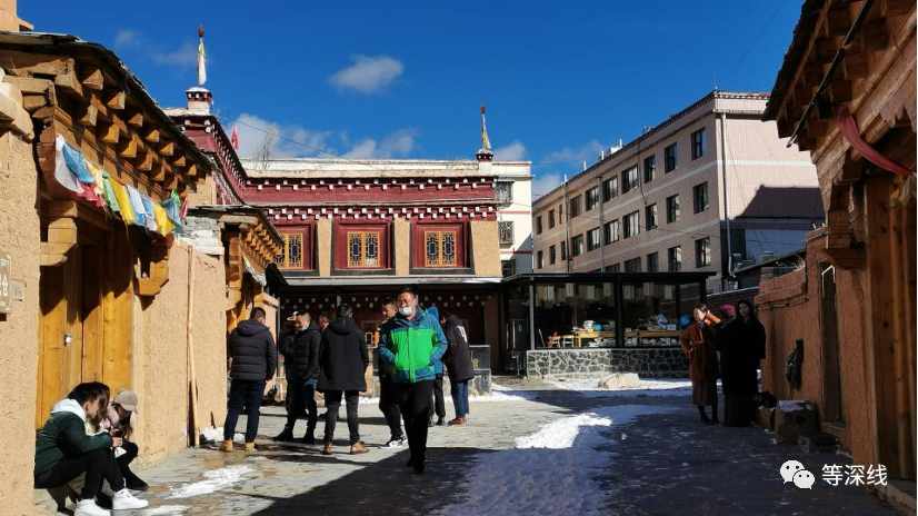 游客在仓央嘉措微型博物馆前等待丁真。《等深线》记者郑丹 摄