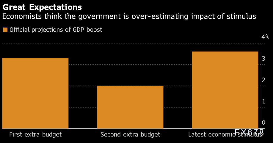 日本预计其最新的刺激计划将使经济增长3.6%,但分析人士警告说,应谨慎对待这一预计。