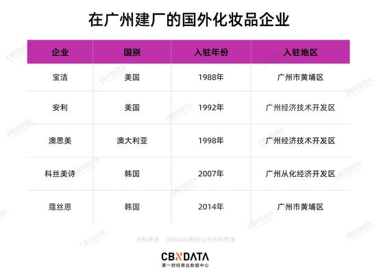 图片来源:头豹研究院《2019年中国护肤品行业概览》不断完善的产业链基础,也吸引了更多国外化妆品企业在广东建厂,从而对中国这个世界第二大的化妆品消费市场做出及时反应。业务遍布80多个国家地区的安利集团,有“化妆品界富士康”之称的韩国第一大化妆品制造厂科丝美诗等,都相中了广州。